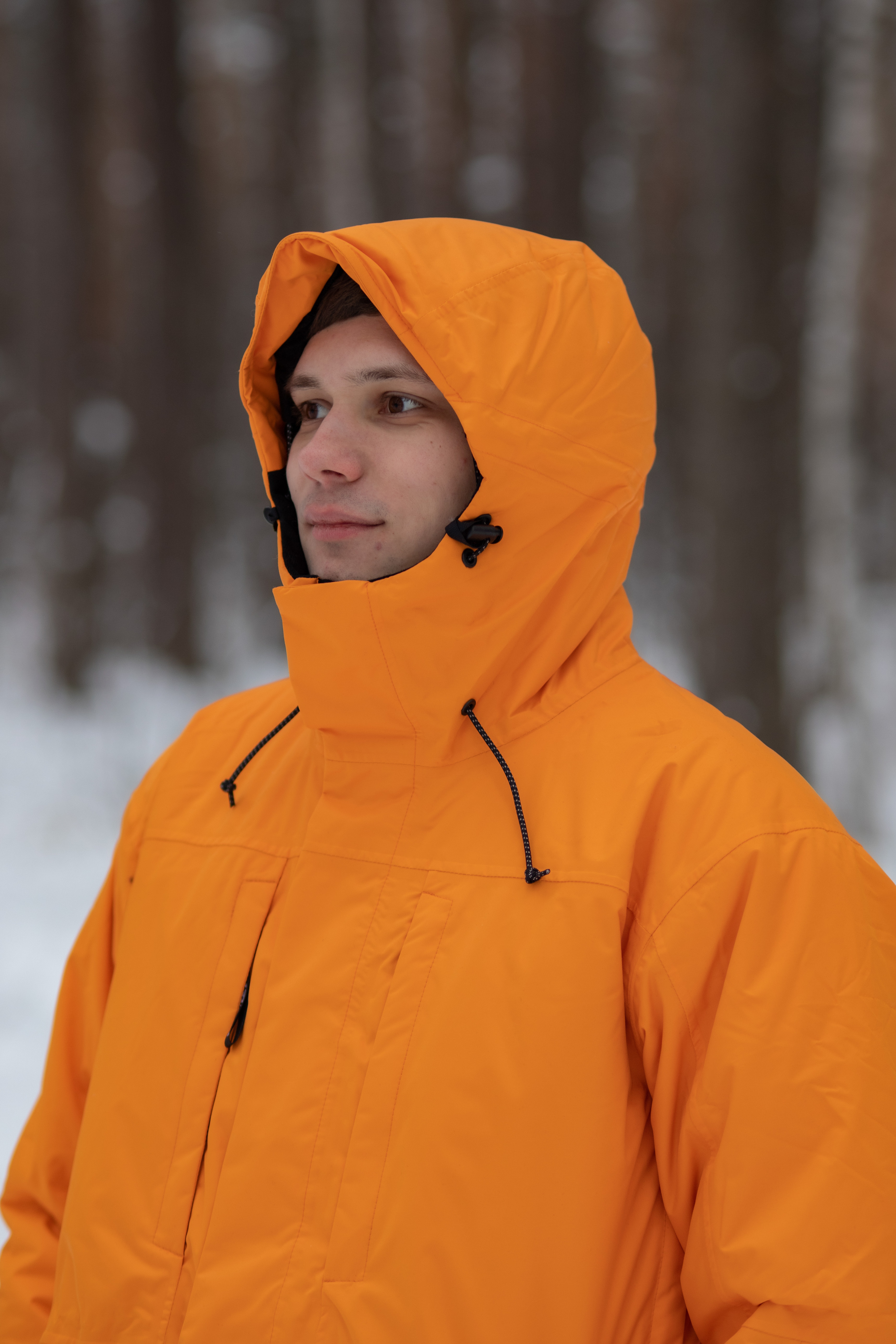 Материал верха — двуслойная мембрана, отводящая влагу от тела и не допускающая ее внутрь (дождь, мокрый снег, сырой туман). Наполнитель слайтекс — гипоаллергенный и живучий наполнитель, ориентированный на активный отдых. Внутри — подклад.