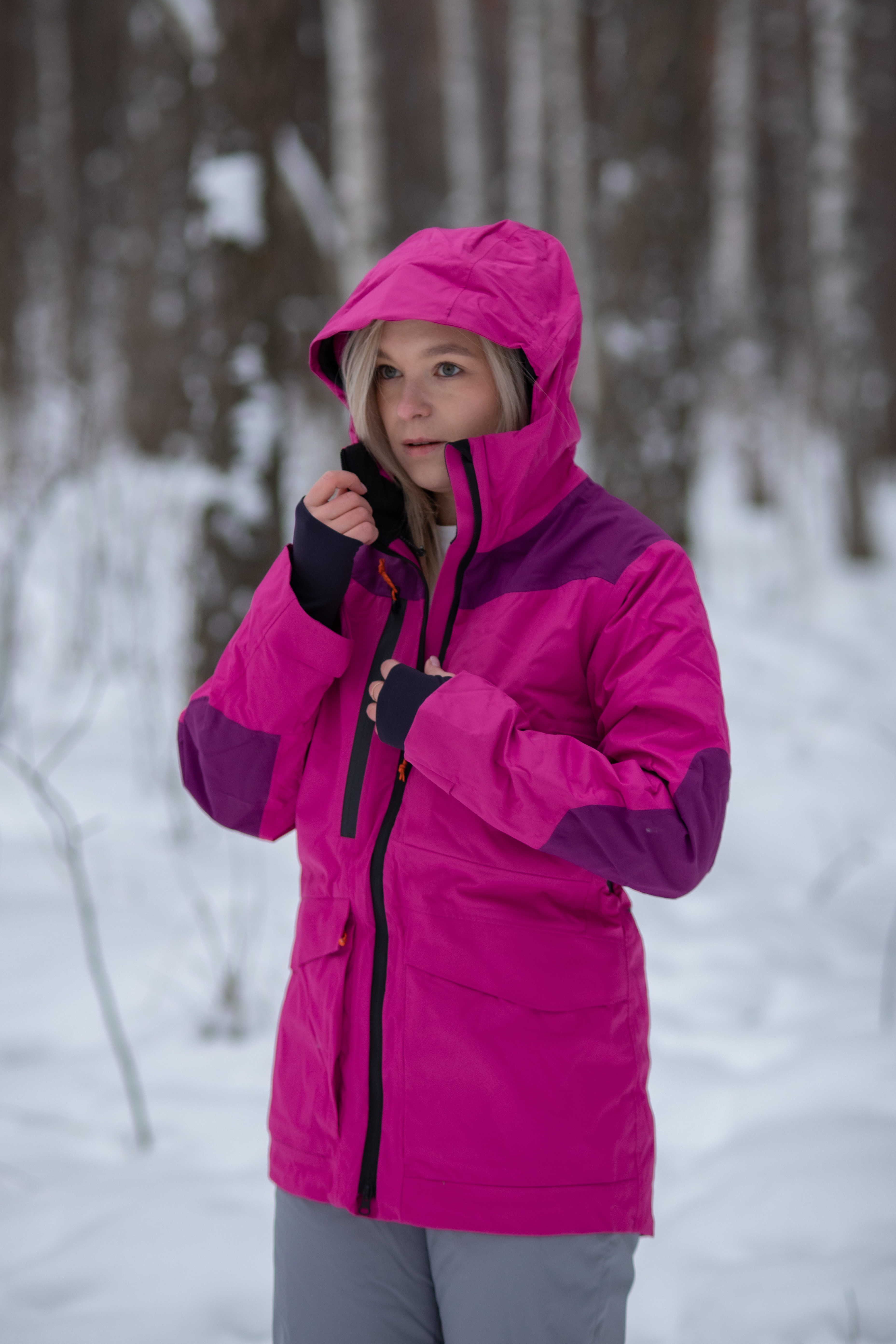 Удобство конструкции: Анатомический крой подходит для многослойного одевания, капюшон 3D-формы регулируется индивидуально, система вентиляции снижает вероятность перегрева, уплотнённые манжеты и низ предотвращают проникновение холодного воздуха.