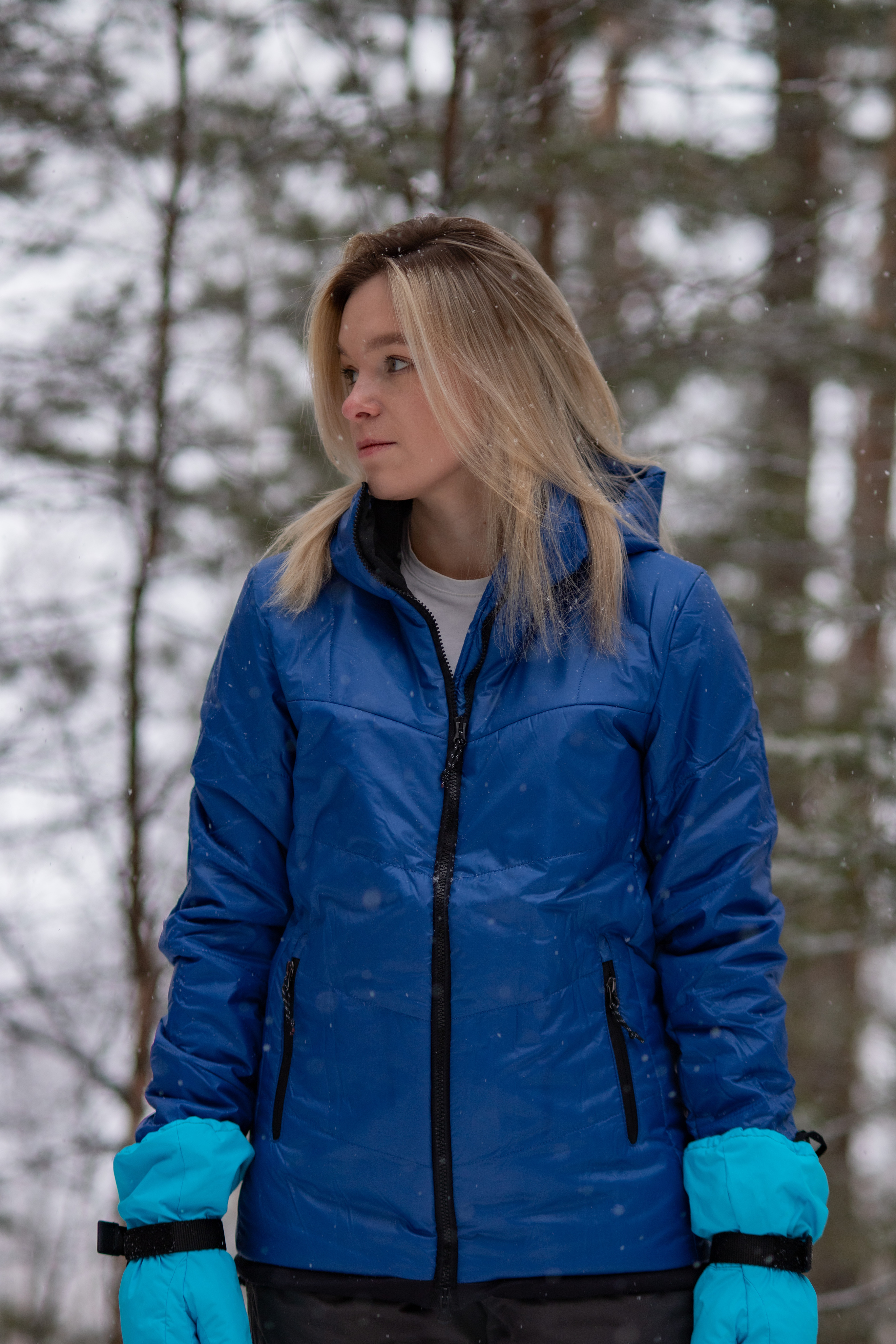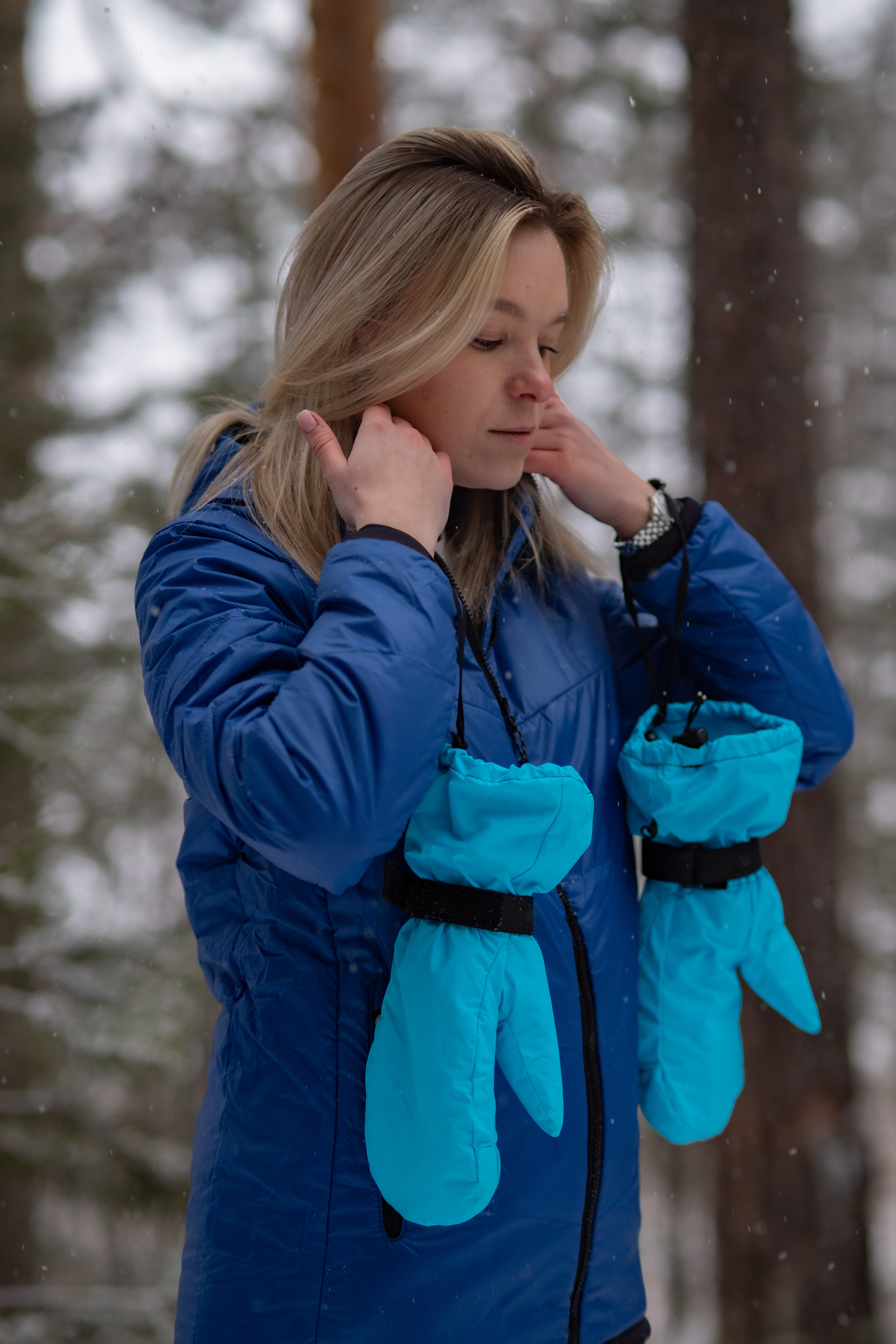 Материал верха — пуходержащая ткань Пертекс. Она воздухопроницаема, не задерживает испарения от тела. Наполнитель — синтетический утеплитель слайтекс.