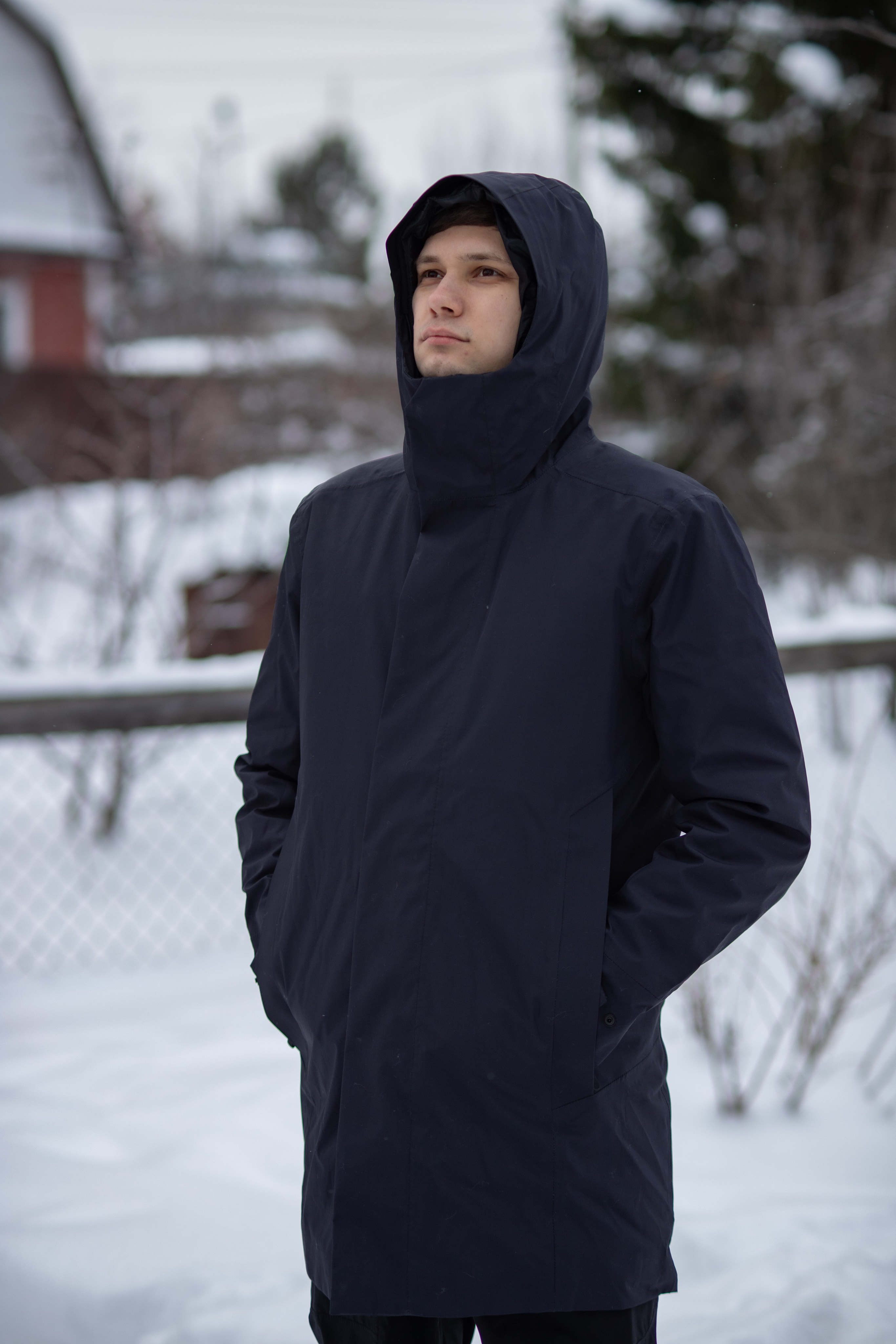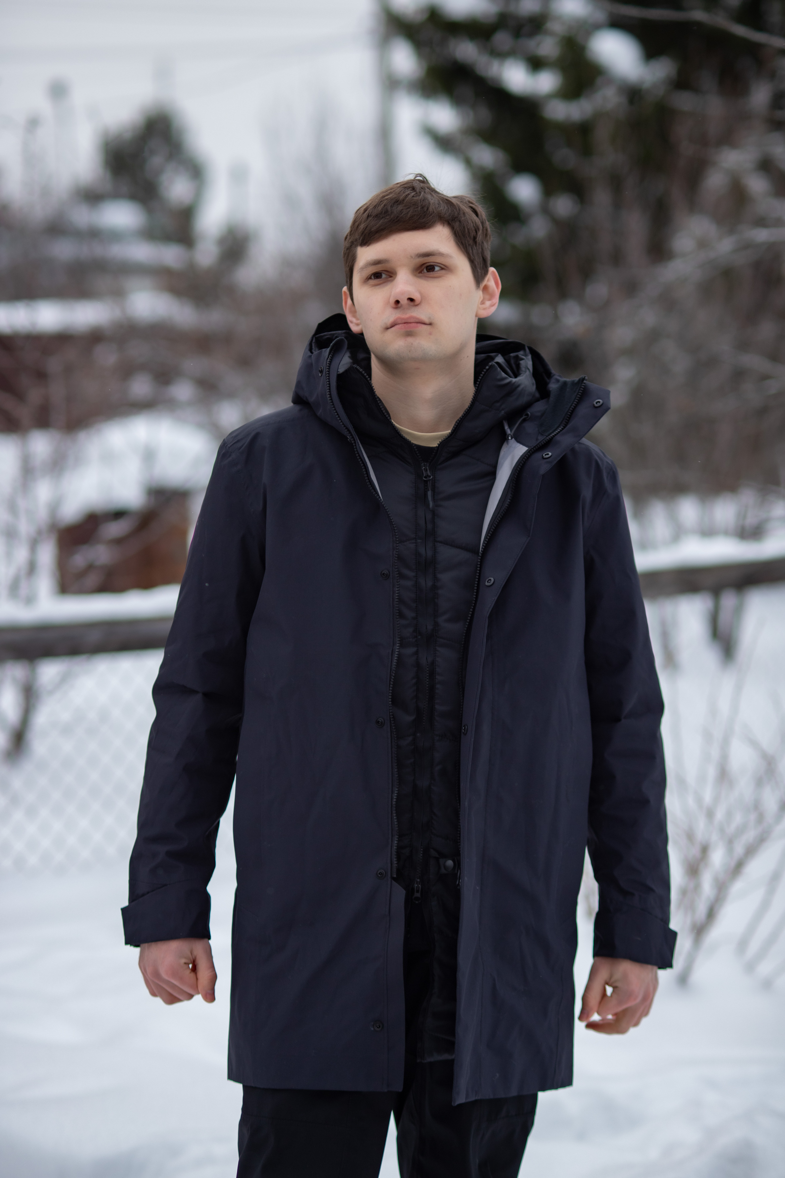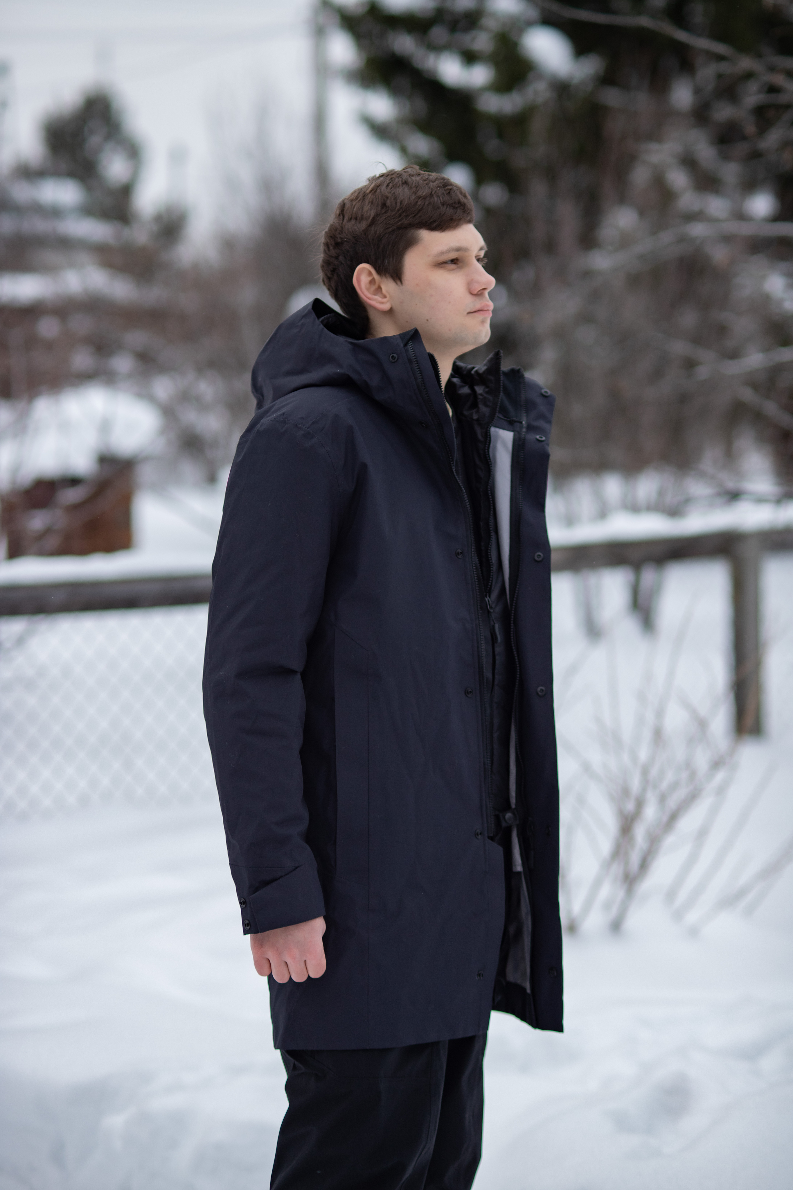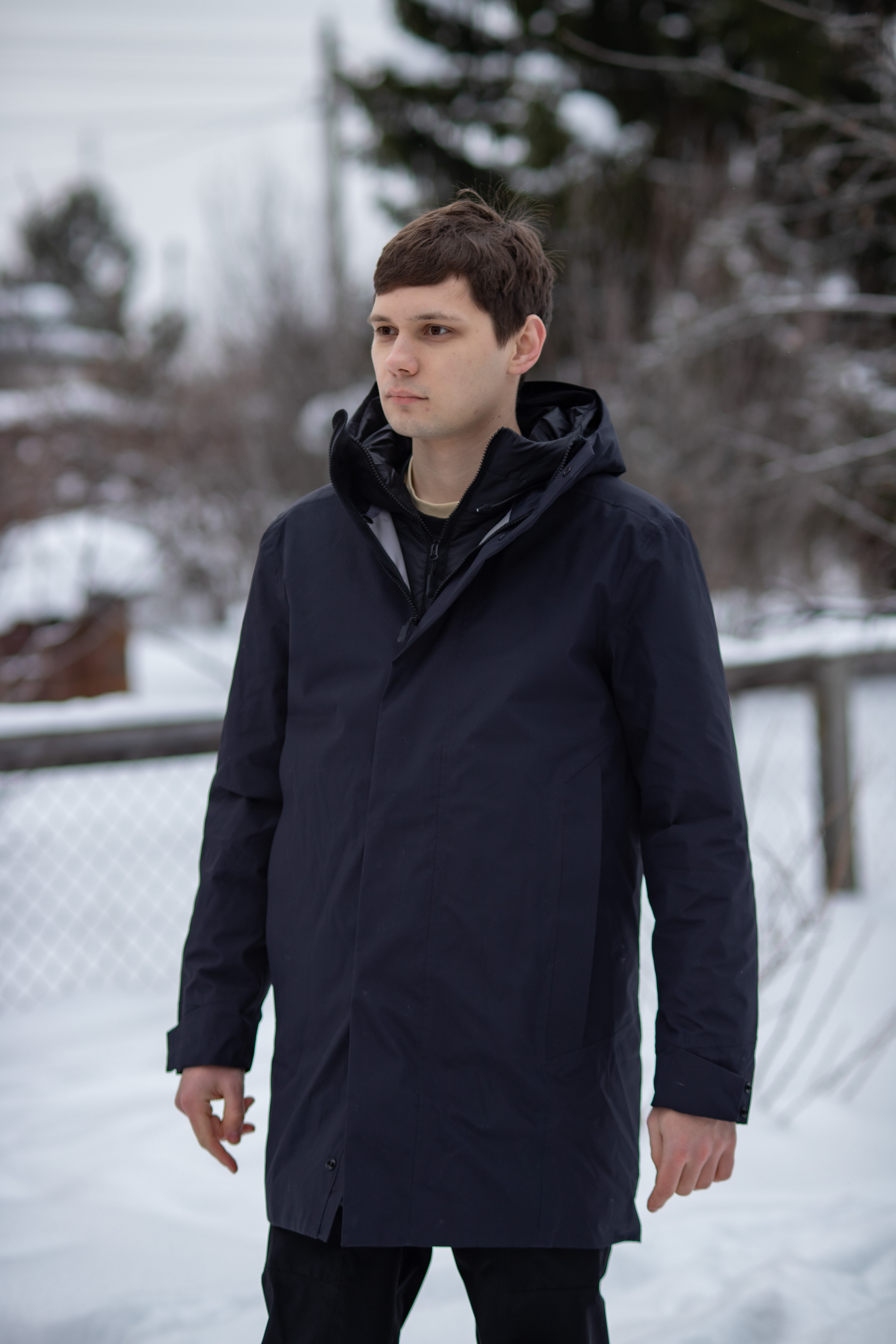 Контур — это городское пальто два в одном. Оно состоит из внешнего плаща из мембраны и внутренней теплой куртки, которые можно носить как вместе, так и по отдельности.