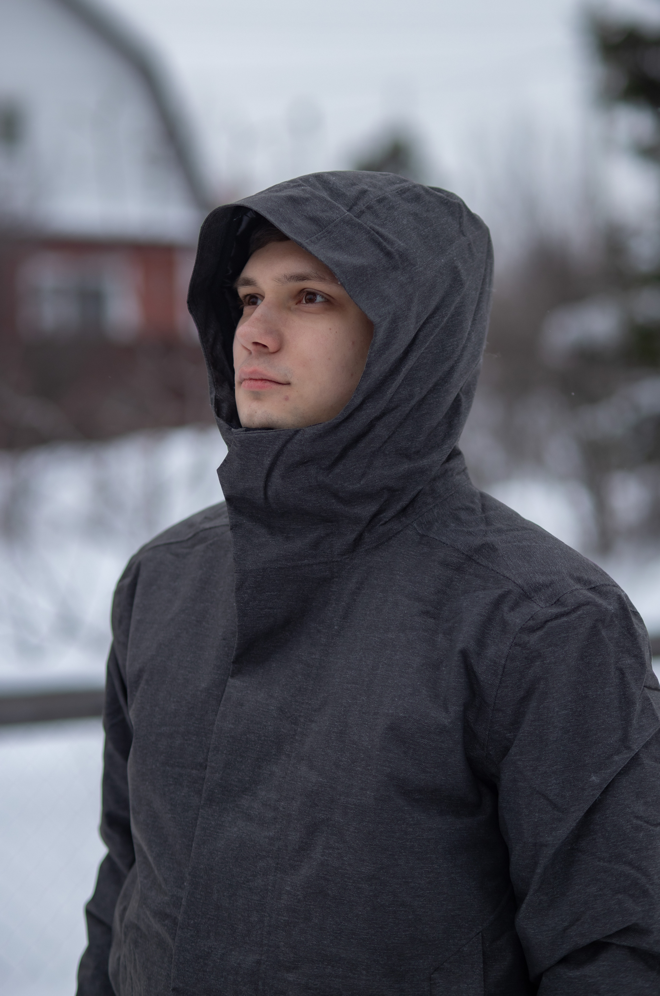 - Воротничок-стойка отдельно от капюшона — даже при снятом капюшоне шея максимально защищена