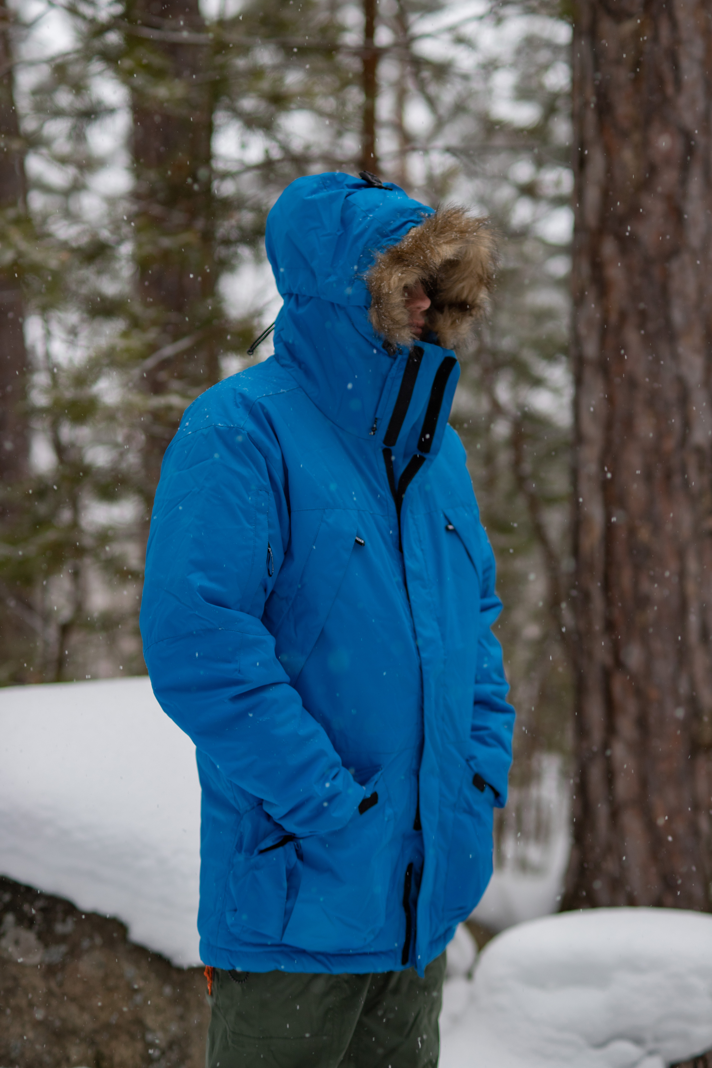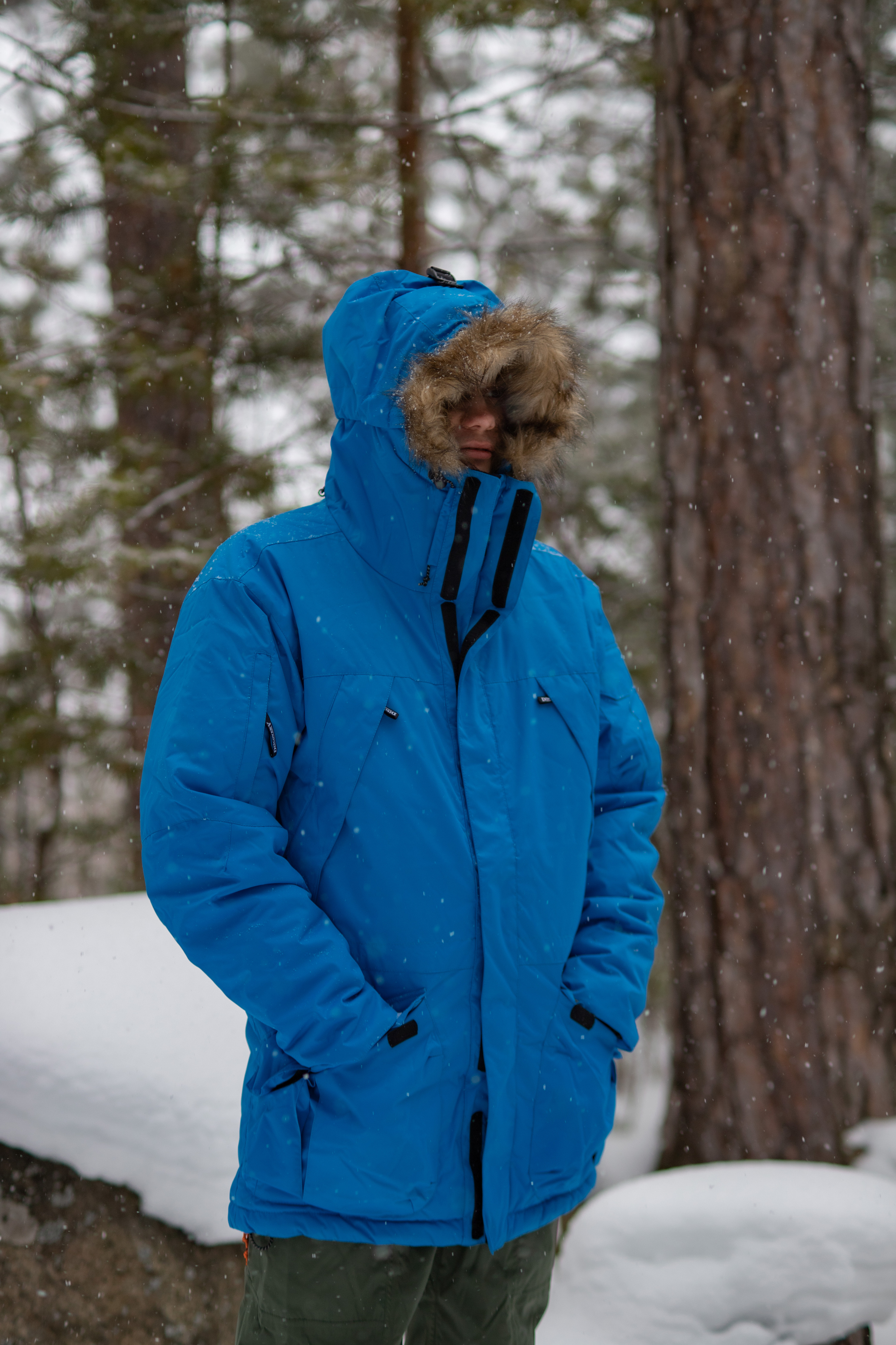 - Капюшон типа Шноркель — вынесет вперед для создания «пещеры» для лица, максимальный комфорт в ветер и снегопад