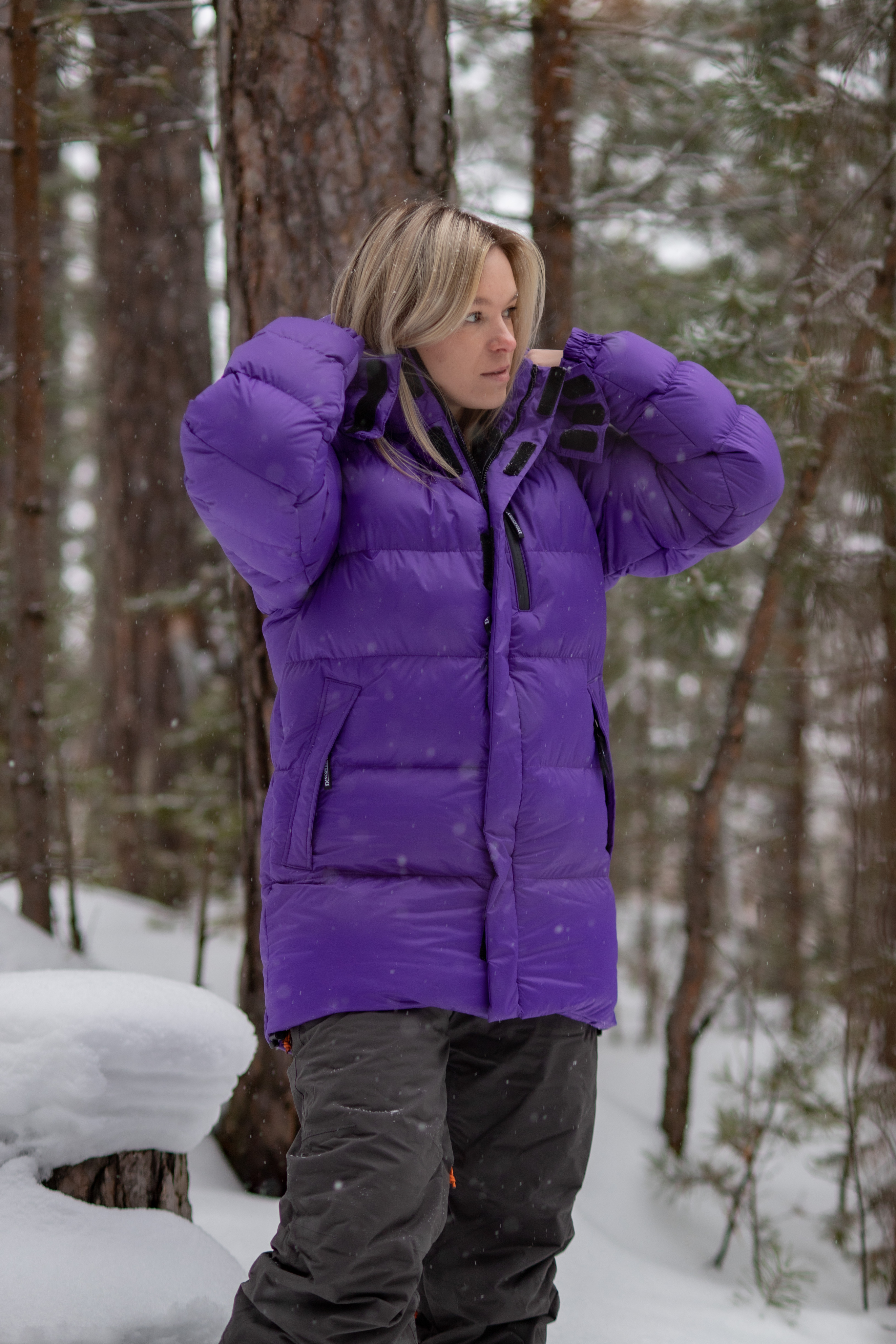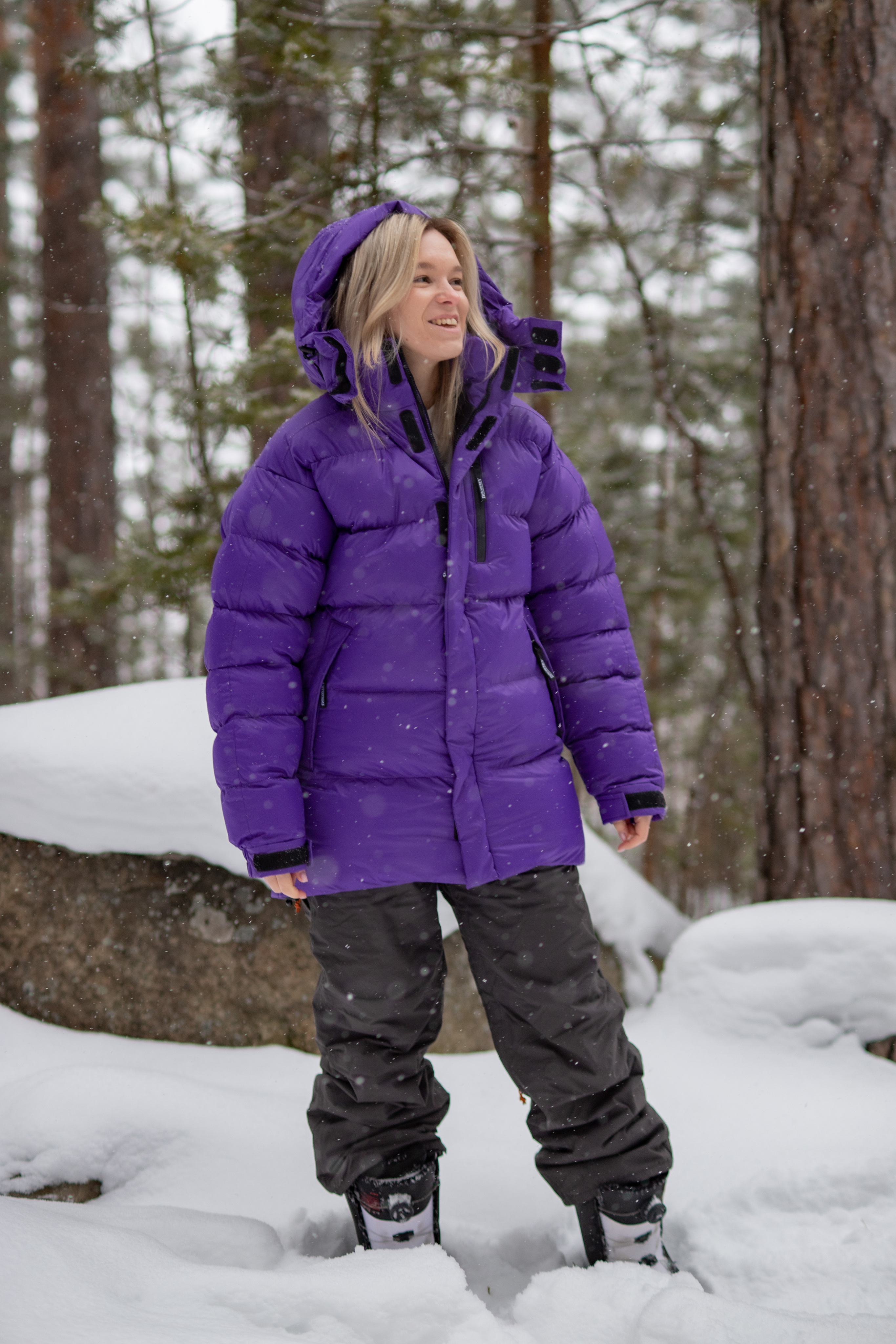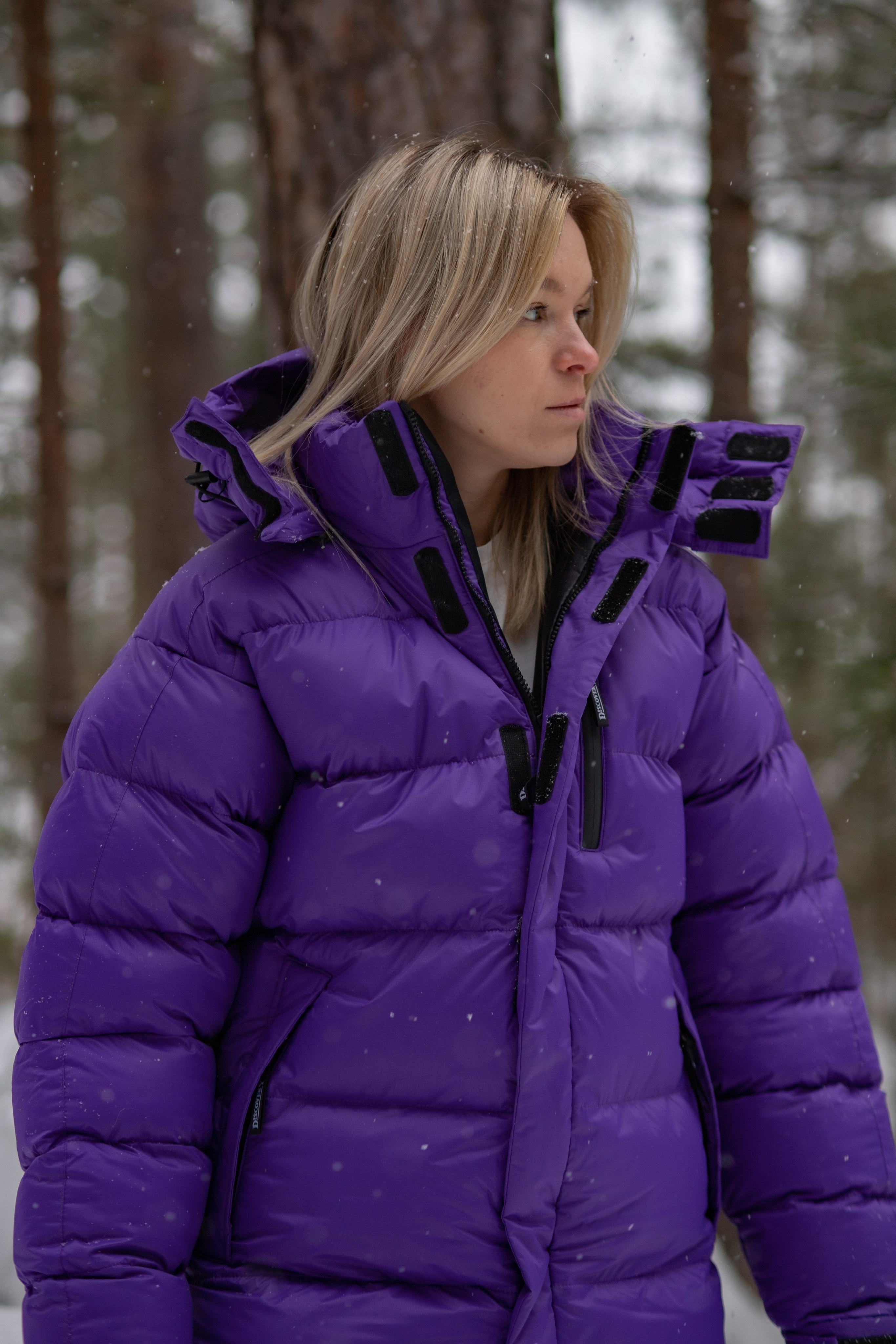Материал верха — двуслойная мембрана, отводящая влагу от тела и не допускающая ее внутрь (дождь, мокрый снег, сырой туман). Наполнитель — лебяжий пух, искусственное волокно. Гипоаллергенное, не сбивается в комки, не намокает, не портится со временем. Очень долго держит тепло.
