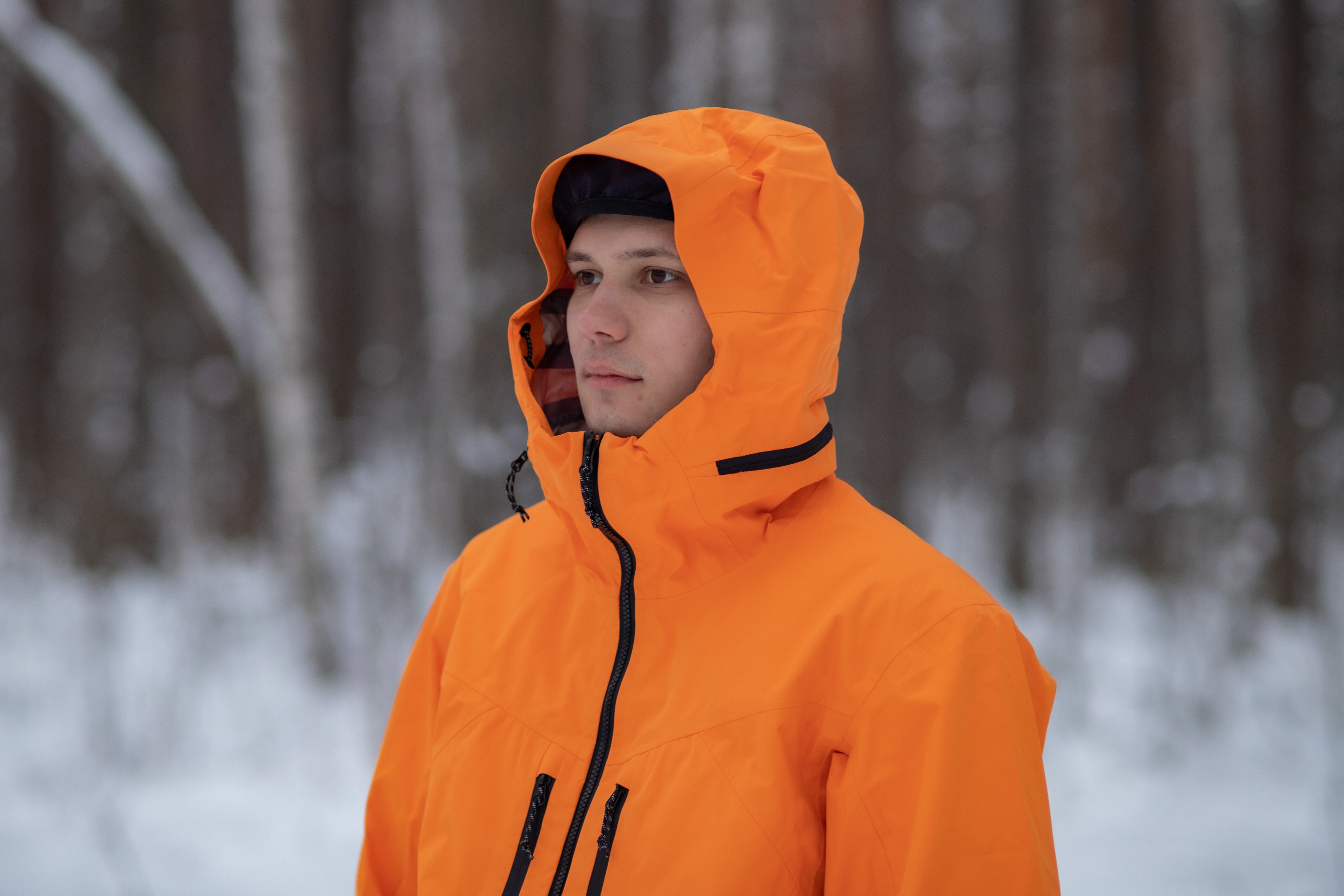 Капюшон регулируется по размеру и подходит для использования вместе с защитной каской.