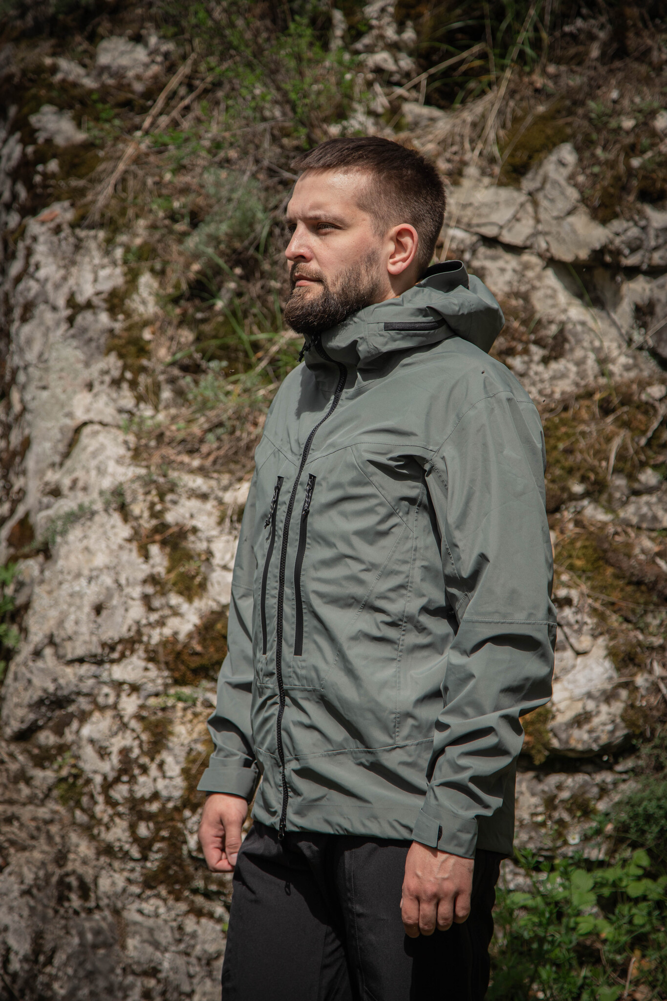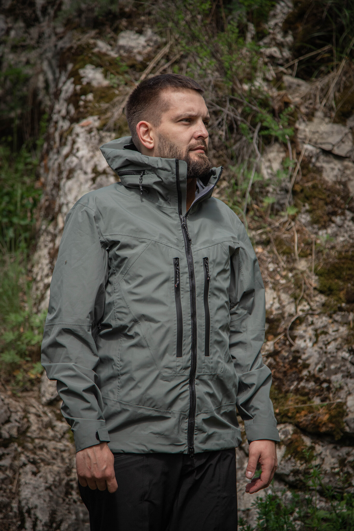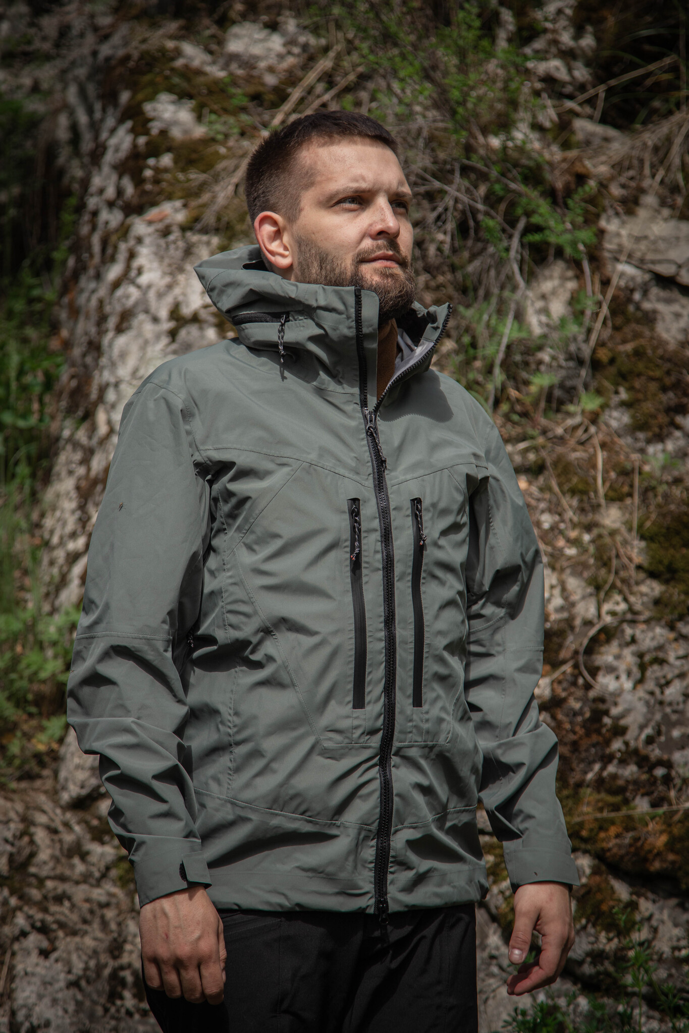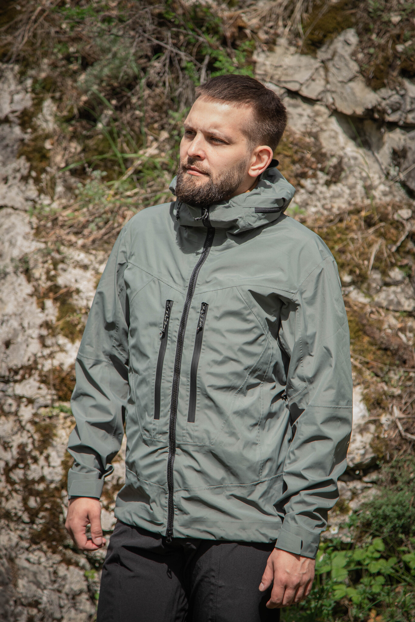Ветровка выполнена из трехслойной мембранной ткани, которая обеспечивает защиту от воды и ветра. Капюшон регулируется по размеру и подходит для использования вместе с защитной каской. На груди расположены удобные карманы, закрывающиеся водонепроницаемыми молниями. Одежда имеет эргономичный крой, что гарантирует комфорт при носке.